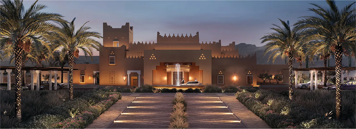 The Oberoi Hotel and Branded Residence adopts a Najdi architectural character, in line